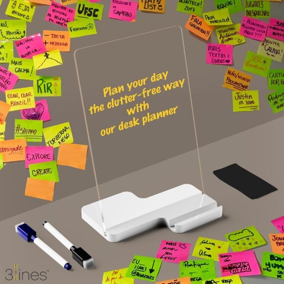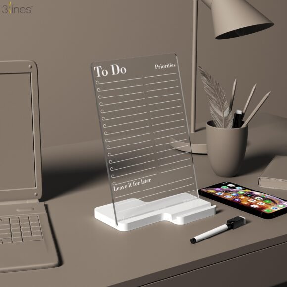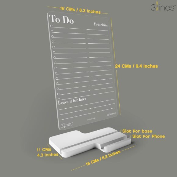 3 Lines Clarity+ ‘To-Do Priorities’ Acrylic Board for Desk (24×16 CM)| Best Planner & Organiser | White Acrylic Base With Slot for Phone| With 2 Markers & Cleaning Fabric |Regular Size