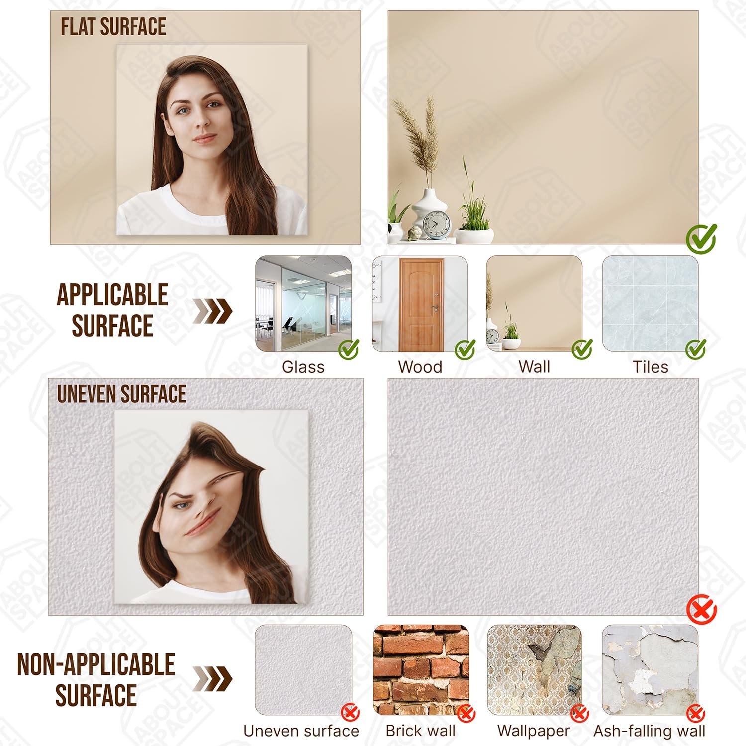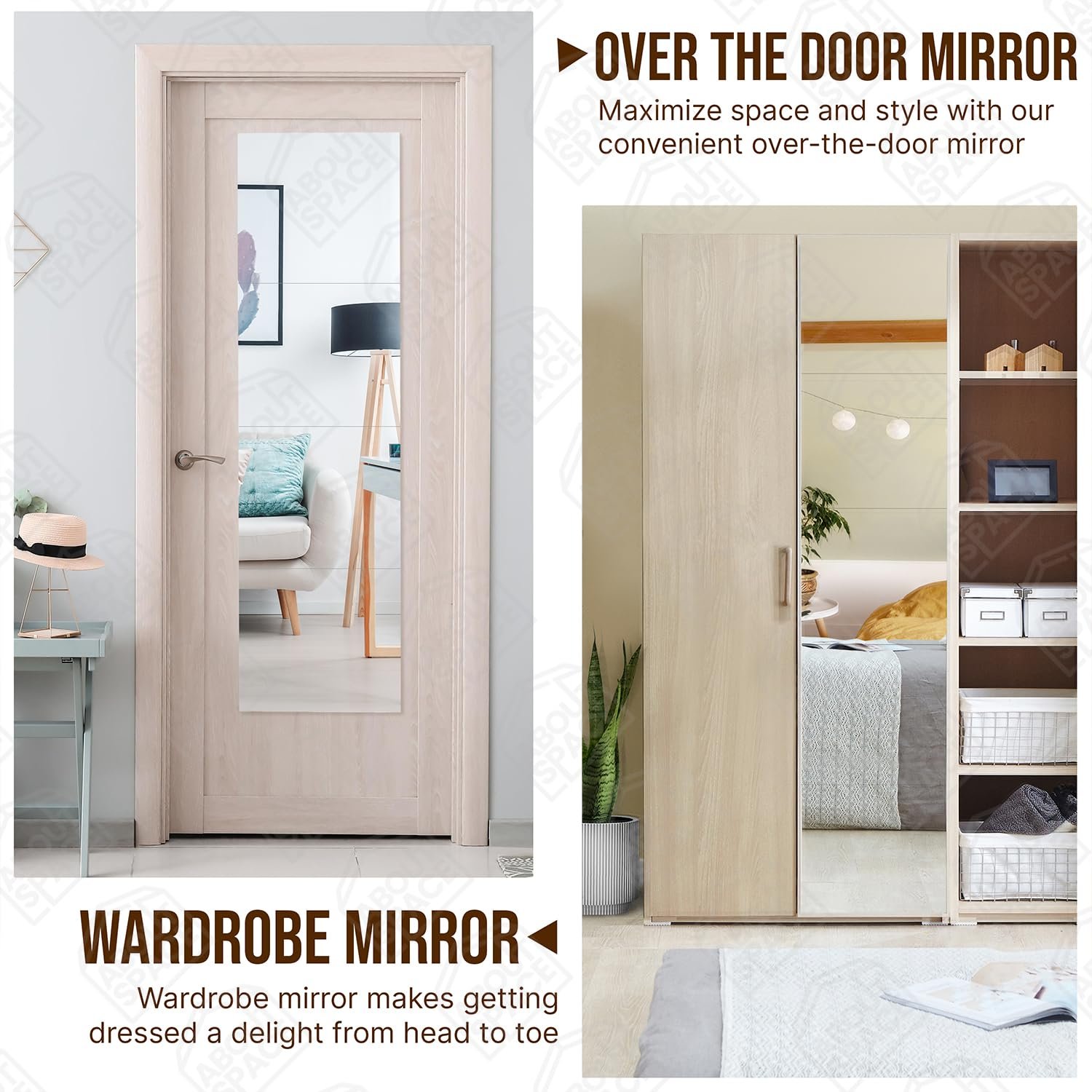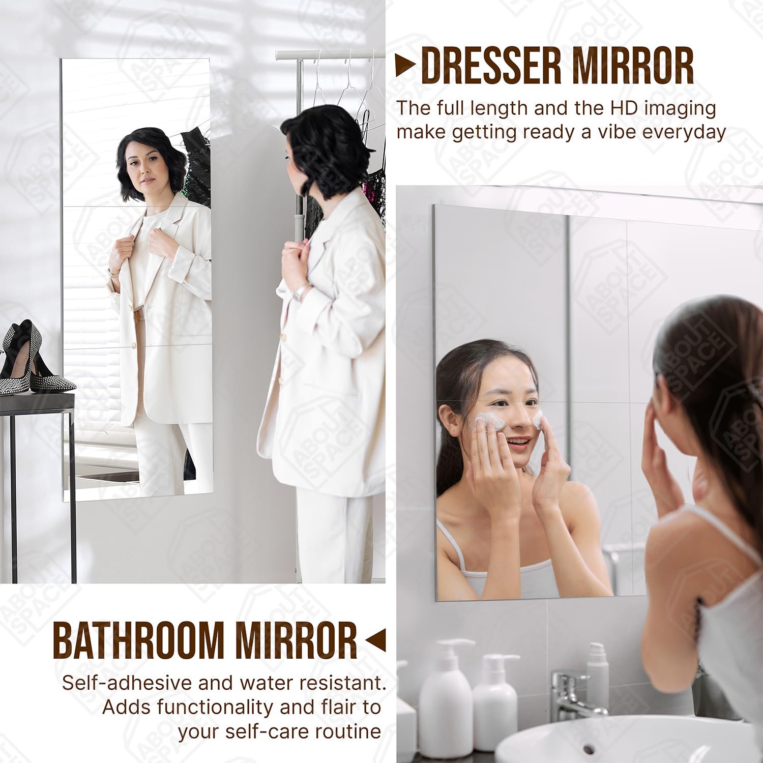 - WALL MIRROR: ABOUT SPACE 4 beautiful home decor wall sticking mirror looks elegant. Placing it in the entryway makes it more welcoming for the guests. It can be kept in the dressing rooms, living room and bedroom as a unique addition, it can also be used as a bathroom mirror