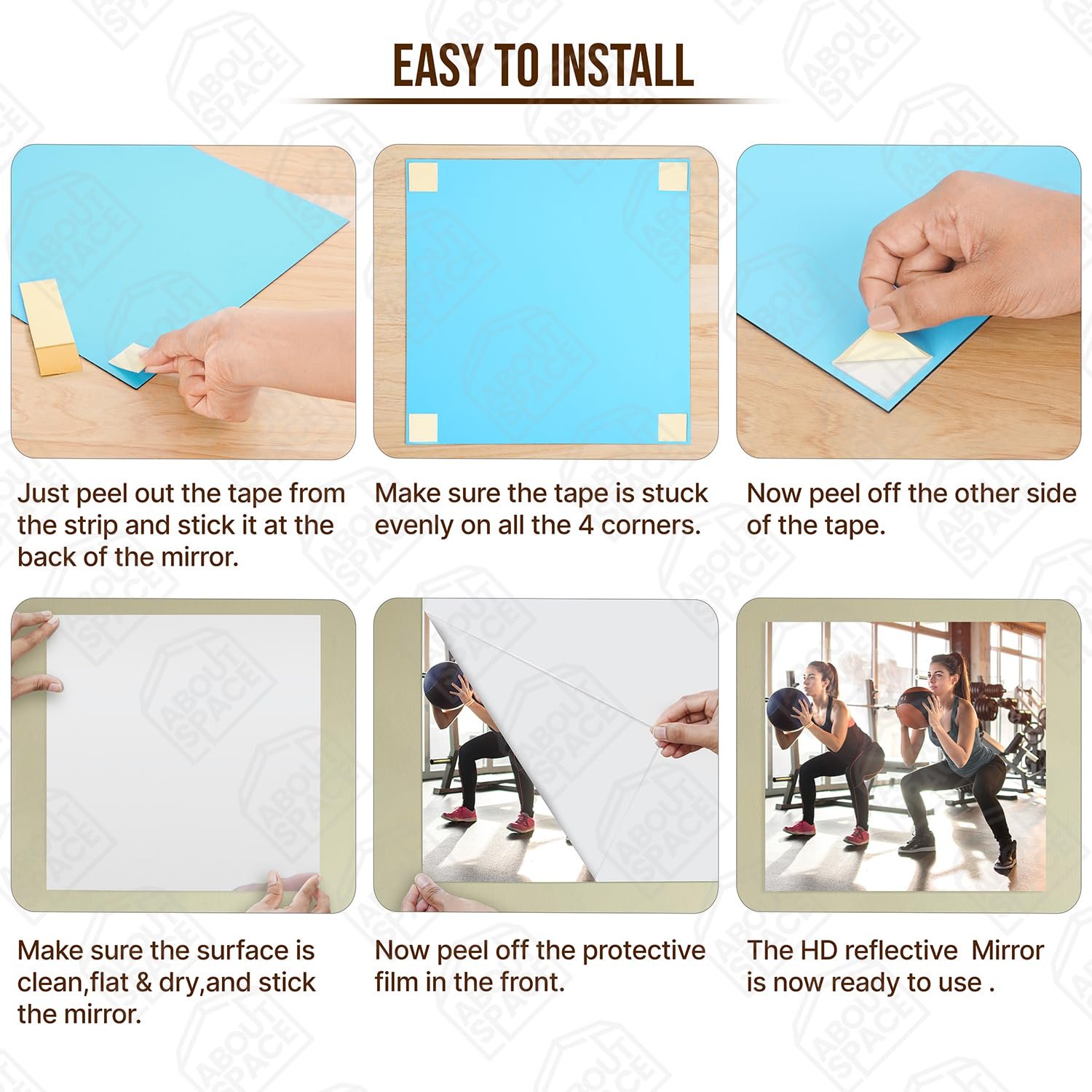 - EASY TO INSTALL: Make sure the surface is clean, flat & dry. Just peel one side of the double tape and stick it at the back of the mirror and then peel off the other side, stick it on the smooth wall surface, and peel off the protective film. A square or a diamond, style it according to your convenience.