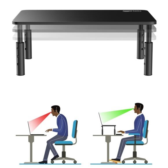 amazon basics Monitor Stand/Laptop Stand for Desk | Compatible with 24″,27″,29″ and 32″ Inch, Laptop, PC, and Printer | Height Adjustable | Durable Steel Construction