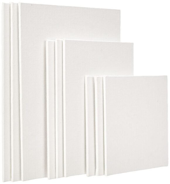 Amazon Brand – Solimo Cotton Canvas Boards for Painting (20.3×25.4 CM, 15.2×20.3 CM, 15.2×15.2 CM) Combo Pack of 9,White