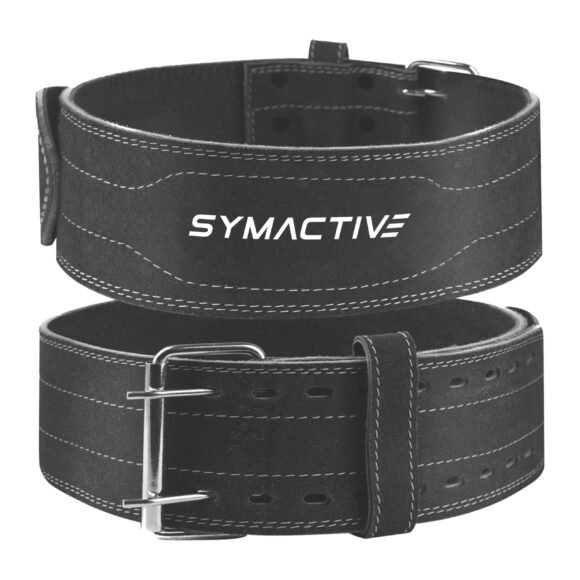 Introducing Amazon Brand – Symactive Professional Leather Powerlifting Gym Belt. Lift heavy with confidence and safety using our durable suede gym belt. Its adjustable double-prong buckle closure ensures a snug fit, while reinforced stitching adds stability. Versatile for various weightlifting exercises, it enhances performance and prevents injuries by providing crucial lower back and core support. Elevate your workout experience with Symactive’s quality leather belt.