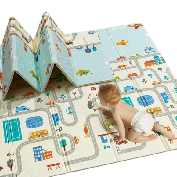 Antson Double Sided Water Proof Baby Play Mat, Baby Play Mat Waterproof Portable Double Side Soft Reversible and Foldable Foam for Toddler, Infant & Kids (Large)