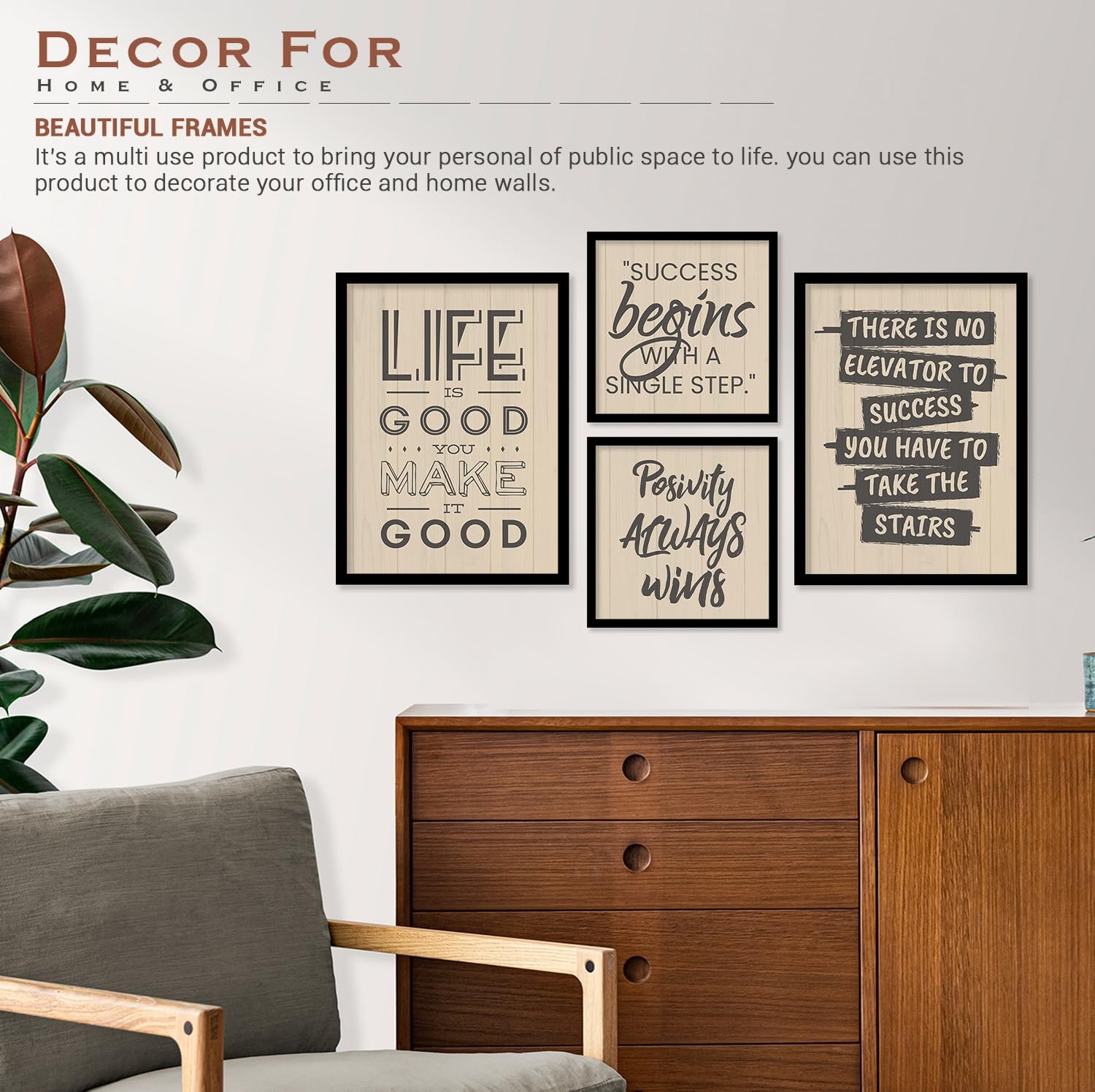 - USE WHEREVER YOU WANT – The stylish picture frames are multi-use home and office decoration item that can also be used in hostels & study room, classrooms & corridors as well as shops & cafes. In short, if you can find a wall to nail, these framed posters will stay & convey.