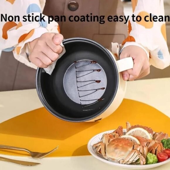 - NON STICK LINER : The Liner of This Electric Hot Pot Is Made of Stainless Steel and Ceramic Glazed Non-Stick Coating, Rust-Proof, Stain Resistant, Completely Non-Stick, Safe and Healthy for Long-Term Use.It Is Suitable for Cooking a Variety of Dishes, Such as Boiling Ramen, Cooking Spaghetti, Frying Eggs, Cooking Hotpot, Stir-Frying Vegetables, Deep-Frying Chicken Chunks, Pan-Frying Steak, Cooking Fondue, Slow-Cooking, Simmering Soup, Making Porridge, Steaming Dumplings and Blanching, and So On.