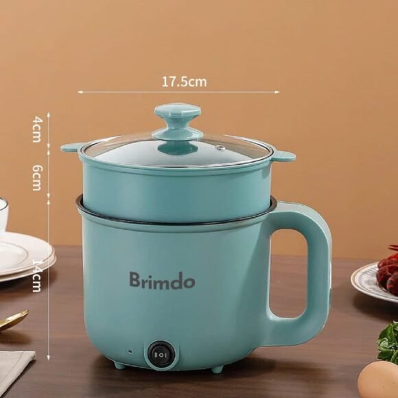 Details: Brimdo 3-In-1 Multi Kettle with Steamer, 1.8 L Tempered Glass Lid for Easy Viewing a Two-Stage Thermal Safety Mechanism Prevents Your Food from Being Over-Cooked. Keep Warm: Separate Heating Element for Keep Warm Function. Anodized Cooking Pan. Indicator Light for Cooking and Keep Warm Functions. Troubleshooting Guidelines: Do Not Wash the Main Body of Kettle or Immerse It in Water. Its Electrical Insulation May Get Damaged. Read User Manual Carefully Before Use, Capacity – Cooks Up to 1000gm of Raw Rice. All in One Electric Cooker Is Your Perfect Choice to Cook a Small Size of Meal. Two Temperature Settings to Cook a Variety of Foods Such as Hot Pot, Noodles, Boil Water, Make Soup, Stir-Fry Vegetables, Etc. Non-Stick Coating Make It Easy to Clean. The Detachable Power Cord Make It Very Portable and Ideal for Dorm Rooms, Offices and Camping. Safety Features Include Overheating Protection and Cool-Touch Double Wall Design. Visible Cover Enables Users to Monitor the Process of the Food During Cooking. It’s Great for One-Person Use or as an Extra Cooking Appliance in a Busy Kitchen.
