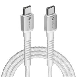 Portronics Konnect X 60W Type C to Type C Unbreakable Nylon Braided Cable, 2M Fast Charging Cable for iPhone 15 series, iPad, Samsung Galaxy & other Type C Devices(White)