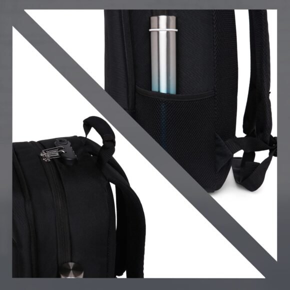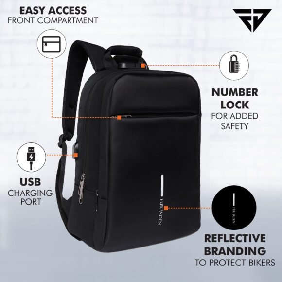FUR JADEN Anti Theft Number Lock Backpack Bag with 15.6 Inch Laptop Compartment, USB Charging Port & Organizer Pocket for Men Women Boys Girls (Black)