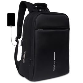 FUR JADEN Anti Theft Number Lock Backpack Bag with 15.6 Inch Laptop Compartment, USB Charging Port & Organizer Pocket for Men Women Boys Girls (Black)