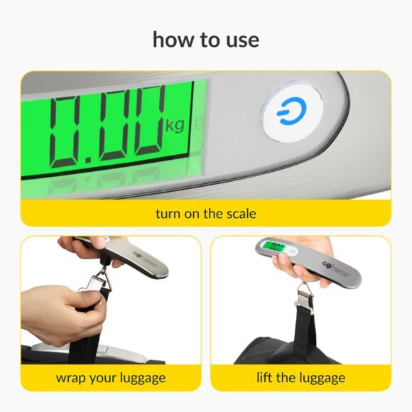 • MULTIFUNCTION INDICATORS: auto shutoff, auto-lock display; battery indicator; easy-to-read LCD display with back light for night vision; this weight machine for luggage also has Tare function which allows you to read the net weight of your luggage easily and precisely; Gotrippin digital weight machines thus are very easy to use. There are 4 kinds of weight units(lb, g, ounce, kg)in this travel luggage weighing scale digital that you can use in most of the countries
