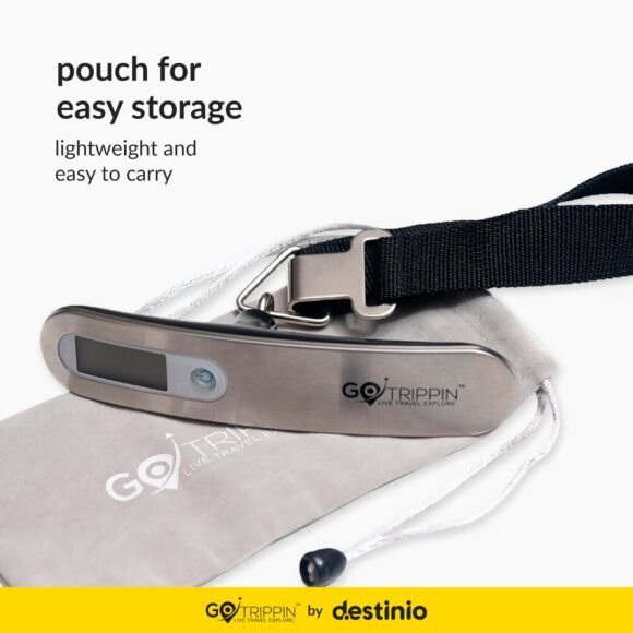 GoTrippin by Destinio Weight Machine for Luggage – 50 kg capacity, Steel body, Lifetime replacement – Digital Portable Electronic Luggage Weighing Scale for home, travel, flights, bags (Silver, 50 kg)