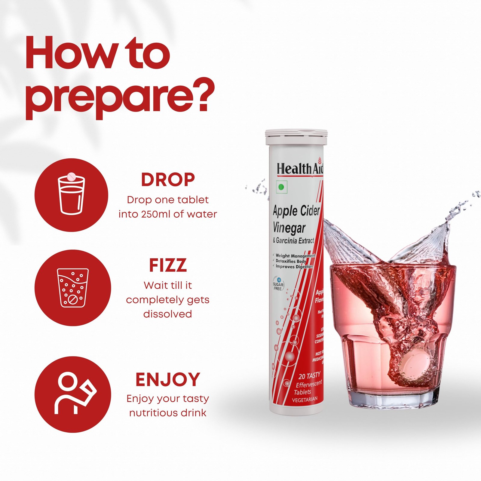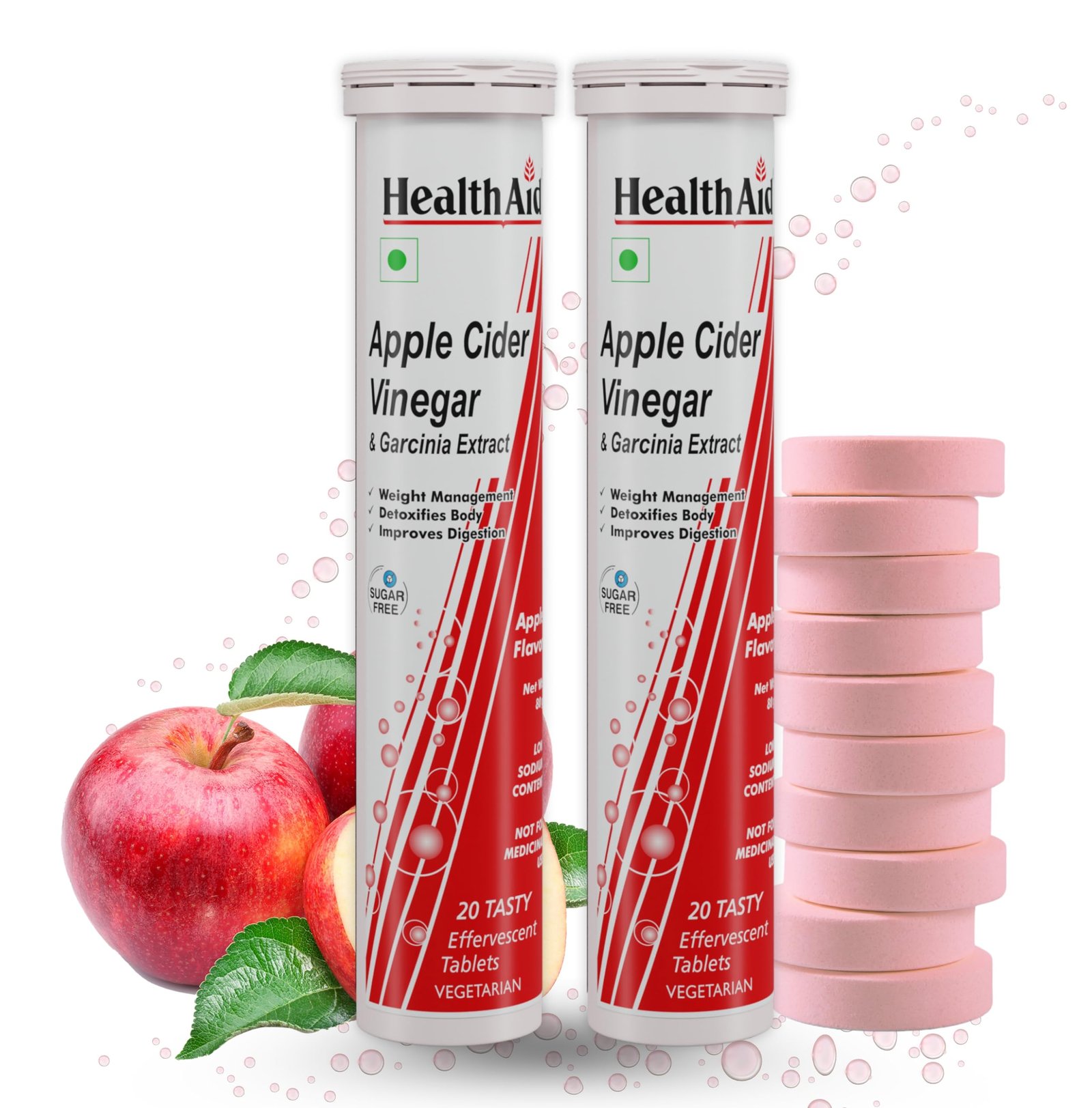 - VEGETARIAN, SUGAR FREE TABLETS –HealthAid knows you’re busy, which is why we’ve made wellness as simple as possible. Our sugar-free, Apple Apple-flavored ACV effervescent tablets dissolve effortlessly in water, transforming your hydration routine into a powerhouse wellness ritual. And because they’re 100% vegan and free of unnecessary fillers, you can trust that every tablet is crafted with your health and value in mind.