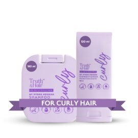 TRUTH & HAIR Hydro Nourish Conditioner (120ml) & Shampoo (180ml) for Curly Hair | With Aloevera Leaf Powder, Hyaluronic Acid, Collagen, Argan Oil & Shea Butter | SLS and Paraben free | Dermat Approved
