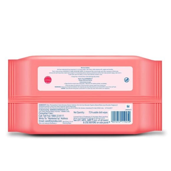 - Johnson’s baby wipes with lid, protects newborn delicate skin from redness and rashes