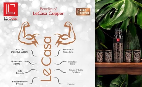 - The LeCasa Copper Water Bottles For Home are Non Toxic , Eco Friendly , and BPA Free . Water Stored in copper vessels alos has anti-inflammatory and anitimicrobial properties that protects your family against bacterial infections