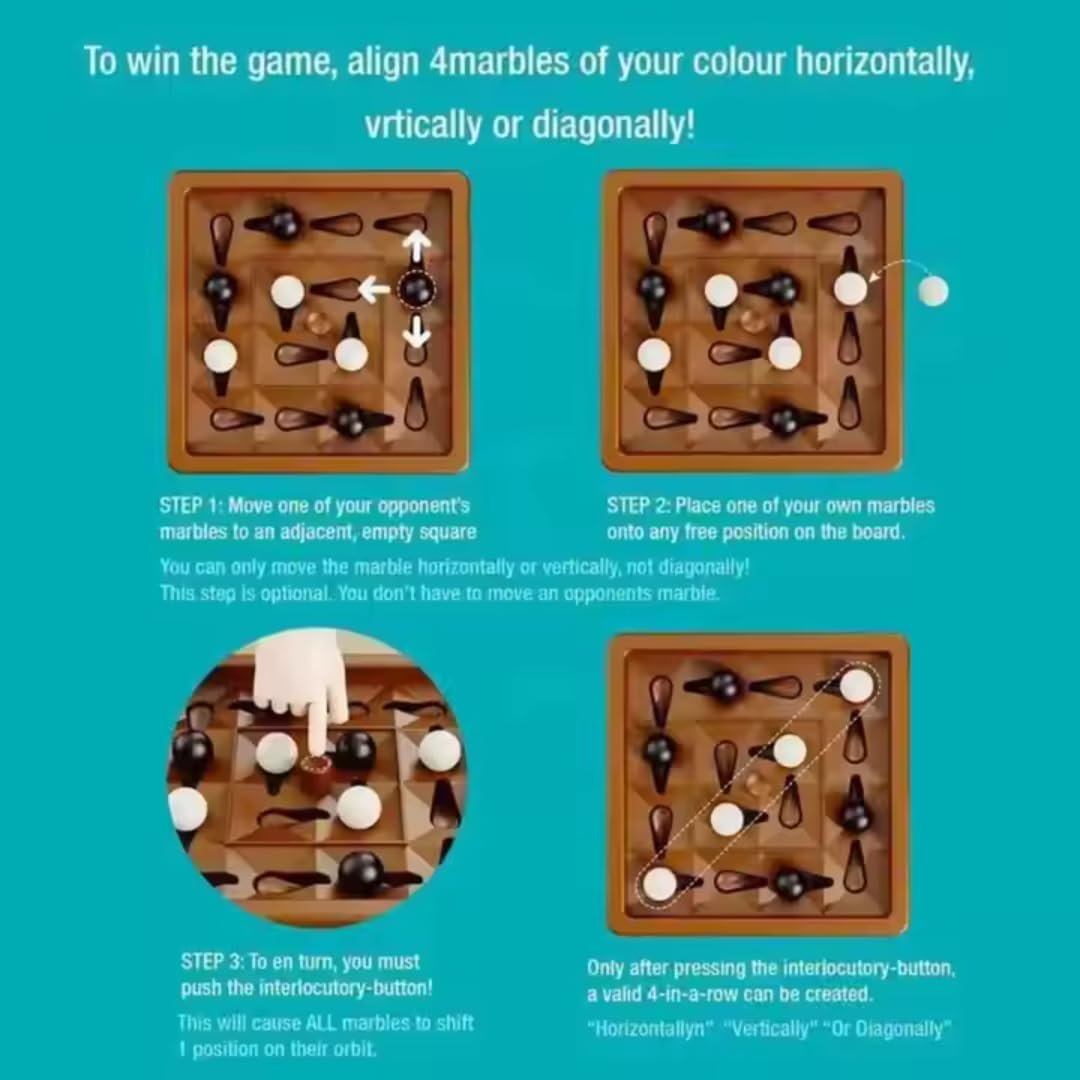 - Engaging 2-Player Strategy Game: Compete to align 4 marbles in a row.