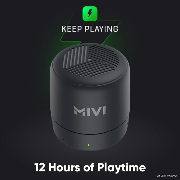 • Play it non-stop: The Mivi Play wireless speaker packs a battery life of up to 12 long hours on a single charge to keep your party going on and on till the break of dawn.