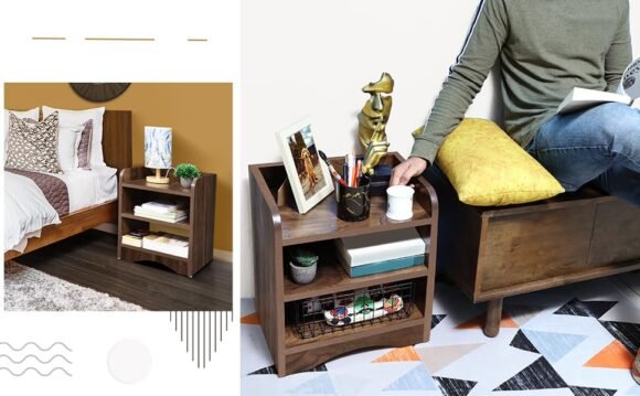 • STORAGE SPACE: Features two open shelves ideal for books, decorative items, and bedside essentials, with a spacious top surface for lamps or displays