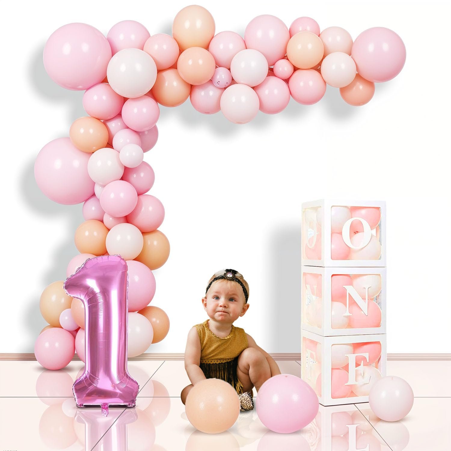 - PERFECT FOR GIRLS AND BOYS: Designed with a soft, pastel color palette, this decoration set is ideal for both girls and boys. The light pink, peach, and white balloons create a delicate and charming environment, perfect for celebrating your little one’s special day. This can also be used as first birthday boy decoration, birthday decoration items for boy 1 year, one year birthday props, 1year birthday decoration items, first birthday decoration, first birthday decoration items, etc.