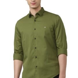 Peter England Men’s Slim Fit Shirt (PCSFSSLPC78022_Olive 39)