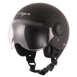 Vega Atom ISI Certified Smooth Matt Finish Open Face Helmet for Men and Women with Clear Visor(Dull Black, Size:M)