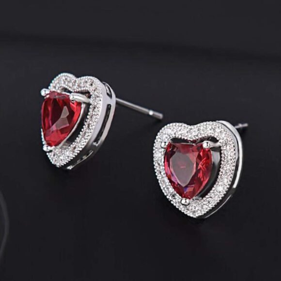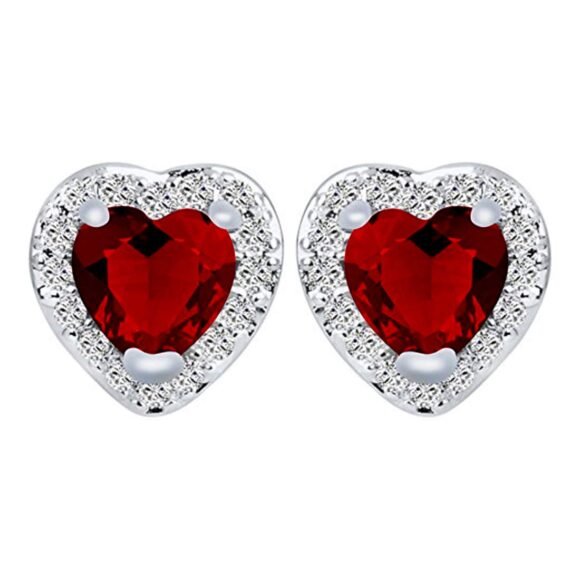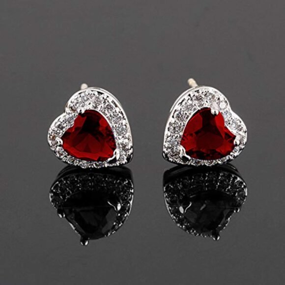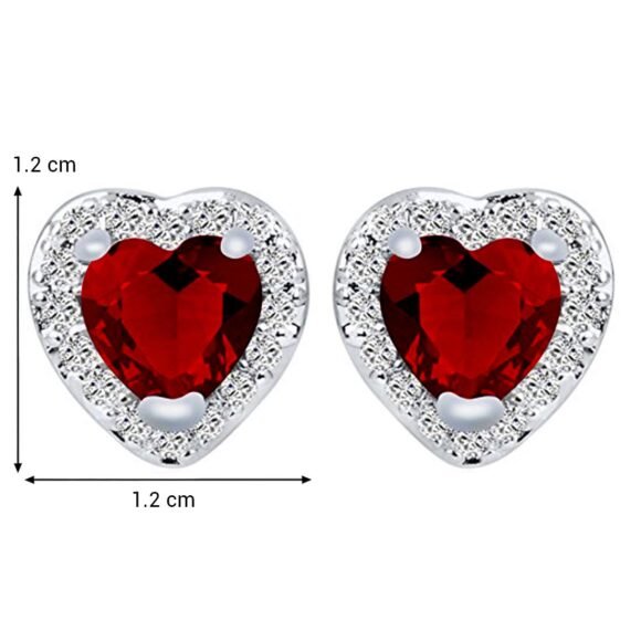 Peora Red Crystal Heart Solitaire Stud Earrings for Women Girls Birthday Anniversary Valentine Gift