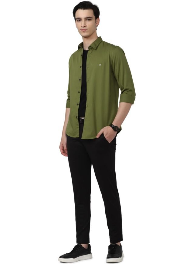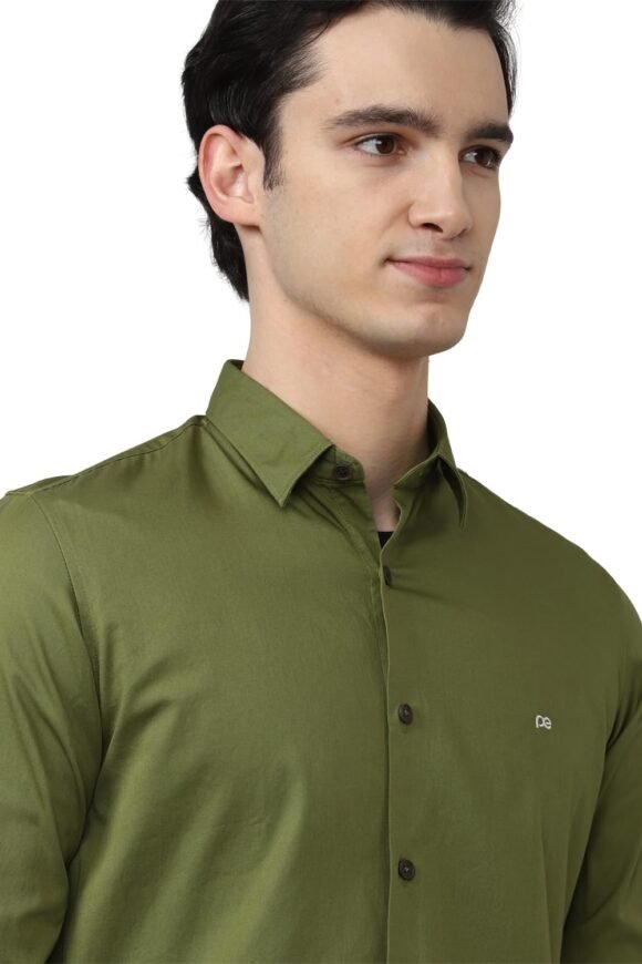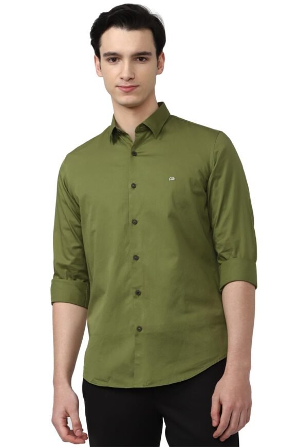 Peter England Men’s Slim Fit Shirt (PCSFSSLPC78022_Olive 39)
