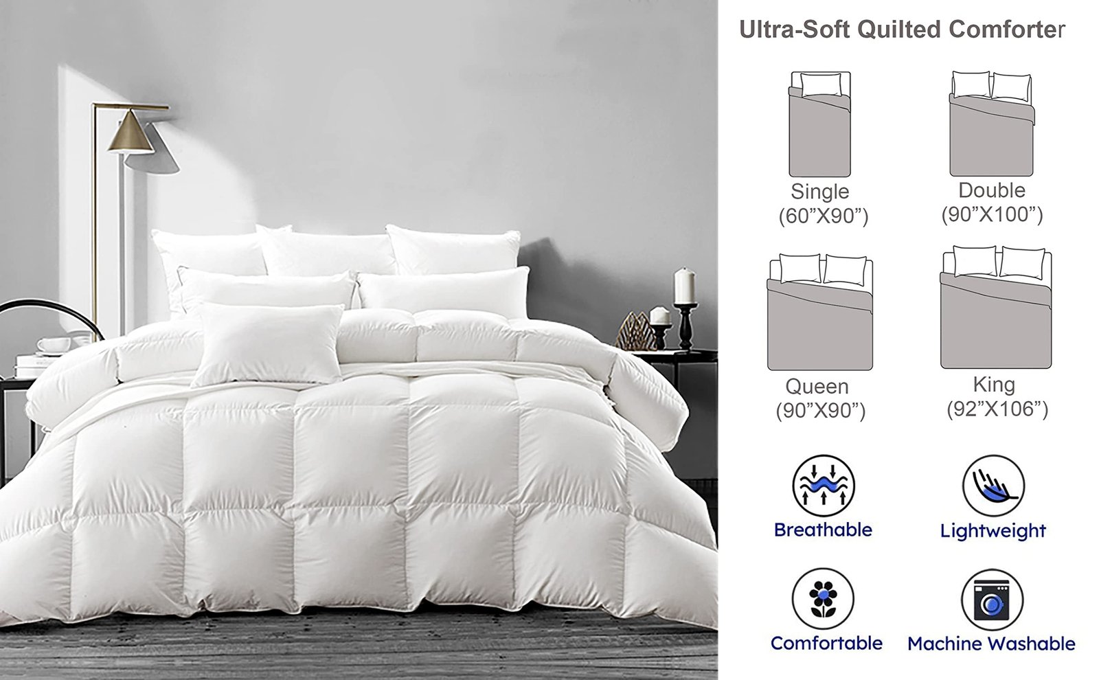 Details: 500 GSM Comforter Super Soft Fluffy Comforter – MammaYoThis Comforter is What You Need for Your Bedding Set! he end to end sewn thru box keeps the filler in place without any clumping or cool spots. Shell Cover made from Microfiber Woven so You can Enjoy Wrapping Yourself in the Softness ee of this Comforter Filled with Siliconized Microfiber Down Alternative with Baffle Box Gusset to avoid any shifting in your comforter for the MAXIMUM WARMTH! This Comforter Comes in 4 Sizes (Single – Double – Queen – King) PERFECT for your Bedding Set. ORDER NOW and BEGIN YOUR SWEET DREAMS!Dimensions and Filling Weight:Single : 1 Piece Ultra Soft Quilted 500 GSM Single Comforter (60″ X 90″) Inches.Double : 1 Piece Ultra Soft Quilted 500 GSM Double Comforter (90″ X 100″) Inches.Queen: 1 Piece Ultra Soft Quilted 500 GSM Queen Comforter (90″ X 90″) Inches.King: 1 Piece Ultra Soft Quilted 500 GSM King Comforter (106″ X 92″) Inches.BENEFITS OF MicrofiberMicrofiber are distinctive for its unique thinness and strength. Woven tightly, it guarantees extra strength and durability. This fabric has desirable properties such as stain and wrinkle resistant, breathing ability, luxurious appearance and easy cleaning100% SATISFACTION GUARANTEESAt Bed Linens and more, we guarantee your 100% satisfaction! If within 10 days you are not 100% satisfied return your product for a full refund! NO QUESTIONS ASKED!