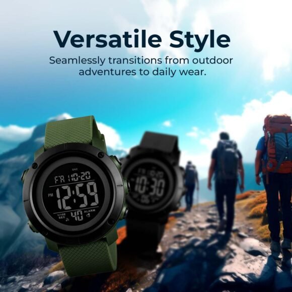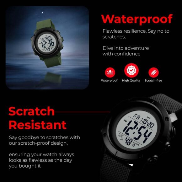 - Bright LED Display for Easy Reading: Enjoy the convenience of a bright LED display that ensures easy reading of time and functions in any lighting condition, making this watch ideal for both day and night activities.