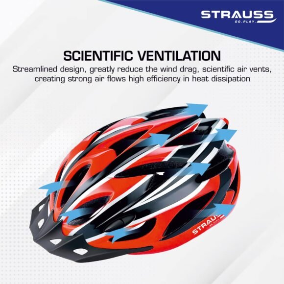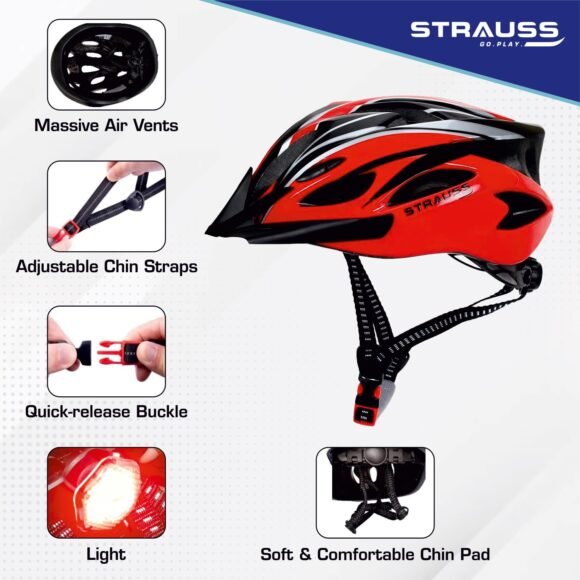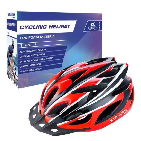 Strauss Adjustable Cycling Helmet with Detachable Visor | Light Weight with Superior Ventilation | Mountain, Road Bike & Skating Helmet | Ideal for Adults and Kids, (Black/Red)
