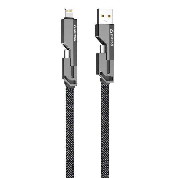 Stuffcool Quad Pro 4 in 1 Metal Flat Braided Indestructible Cable 1.5m 60W with lightning to type C, type C to C, Lighting to type A compatible for iPhones, iPads, Macbooks, Type C Laptops (Grey)