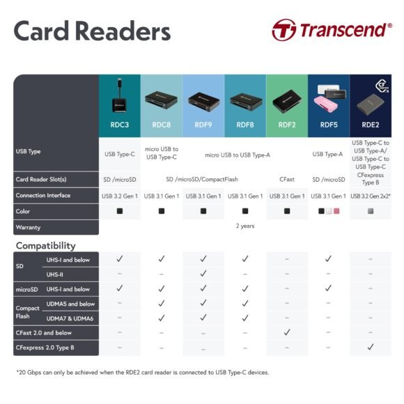 - Supports SDHC (UHS-I), SDXC (UHS-I), microSD, microSDHC (UHS-I), and microSDXC (UHS-I)