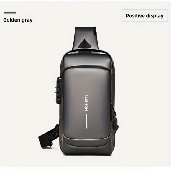 TS WITH TECHSUN Waterproof Anti-theft Crossbody Bag With Password Zipper Lock & USB Charging Port, Men’s Shoulder Chest Daypack Bag Travel Hiking Sling Backpack