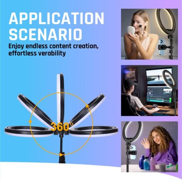 - INTELLIGENT AND QUICK COLOR CHANGE – TYGOT makes it easy to adjust the color temperature from 3400K to 5600K easily without using color filters. Achieve cold white light or warm light to hide blemishes and change skin tones quickly and easily. LED SMD design and 220pcs LED beads on our Ring Light offers more light for your camera photography, live streaming, Facebook Live, beauty makeup, selfies and videos.