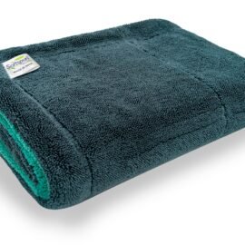 SOFTSPUN Microfiber Cloth for Car 1600 GSM 40×60 cms 1 Pcs Aqua Blue & Grey Twisted Loop Super Absorbent Towel – Edgeless Design with Plush Pile and Lint Free Cloth for Drying and Detailing.