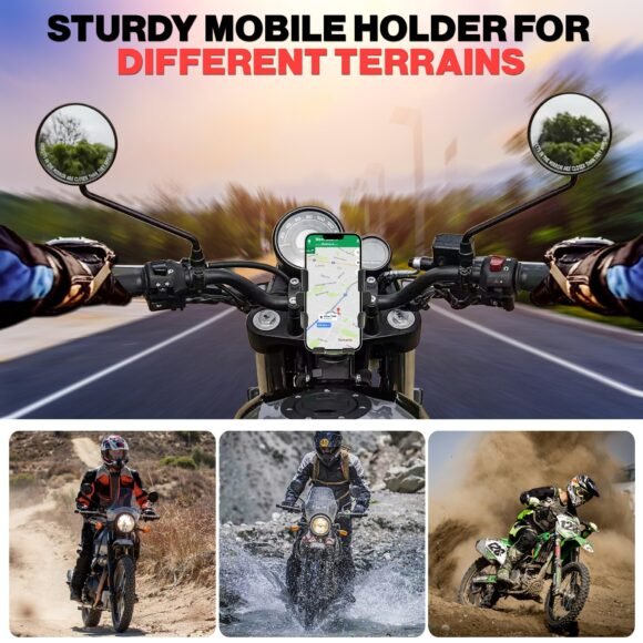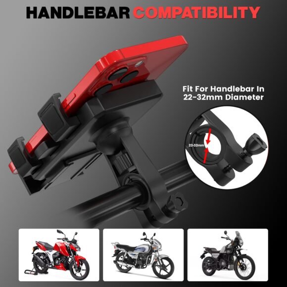 - [ Wide Compatibility ] : The Bike Mobile stand is universally compatible, supporting a wide range of Android and iOS smartphones, including popular brands like iPhones, Samsung, Redmi, Oppo, Vivo, Xiaomi and Mi phones.