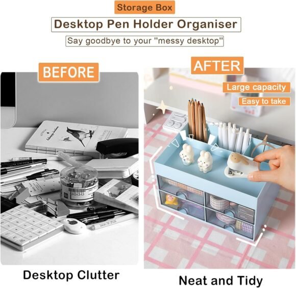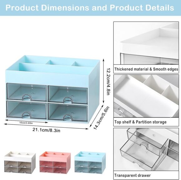 - MULTIPLE STORAGE SPACE : Small body with large capacity, great desktop assistant contains 4 Sections and 4 drawers, different compartments allow you to place items according to your needs, transparent drawers allow you to quickly find what you need, easy to place and take.