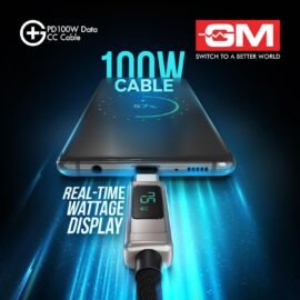 GM G+ PD 100W Data CC Cable Type-C to Type-C Fast Charging LED Digital Display of Power Output |Tough Fiber Braided Cord Compatible with Apple Devices, Samsung Phones, Laptops, Tablets, Google Phones