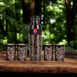 LeCasa – Pure Antique 5PC Copper Gift Set | 1 Copper Bottle – 1000ML & 2 Copper Tumbler 310ML Each | 100% Pure Copper With ISO Certification | BPA Free, Leak Proof & Eco Friendly |