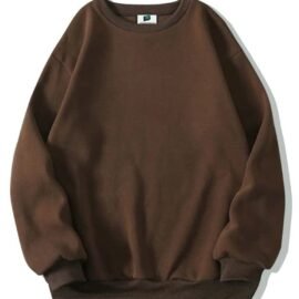 SXV Style Solid Plain Unisex Cotton Regular Round Neck Baggy Brown Sweatshirt_Large