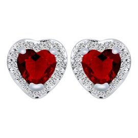 Peora Red Crystal Heart Solitaire Stud Earrings for Women Girls Birthday Anniversary Valentine Gift