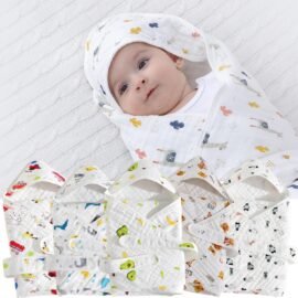 MOM CARE Muslin Hood Towel Cum Baby Wrapper with Belt,Cotton,Organic,Super Soft,White, Pack of 1 Random Print
