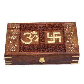 CRAFTCASTL Handmade Wooden Jewellery Box For Women Jewel Organizer Décor Gifts Products, OM Box for Good Luck (OM+Swastic, (10x6x2.5)Inches)